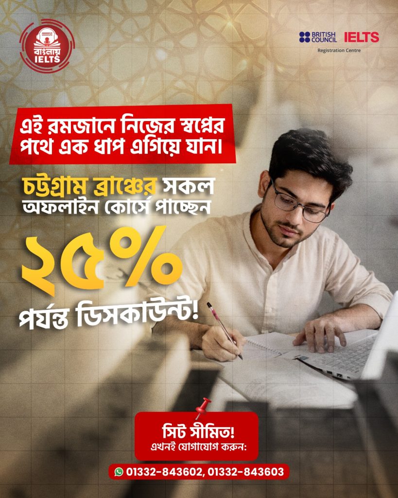 চট্টগ্রাম ব্রাঞ্চের সকল অফলাইন কোর্সে ২৫% পর্যন্ত বিশেষ ডিসকাউন্ট